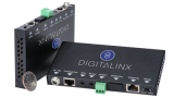 The DigitaLinx DL-HDE100 extender set transmits HDMI (1080p, 4Kx2K (UHD) & 3D) including HDCP 2.2, Ethernet, bidirectional IR, and RS232 up to 100 meters away using a single twisted pair cable.