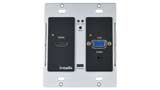 Kit including DL-1H1V1U-WP Auto Switching HDMI / VGA / USB / Audio wall plate with matching Receiver DL-HD2-RX 4K 10.2G 100M 2 HDMI, VGA, & USB2.0 Wall Plate extender set with audio pass-through / de-embedding and automated display control DL-HDBT2-WP-KIT