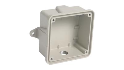 Surface-mounting exterior backbox provides weatherproof installation for VT Series loudspeakers. Unit is tapped for 1/2" conduit and includes a weatherproof gasket. Dimensions: 41/4" SQ x 2" D (108 x 51mm). Weight is .75 lbs (.35 kg). Housing is die-cast zinc finished in a durable Neutral Gray epoxy.