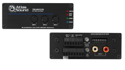 The TSD-MIX31RL 3x1 mic/line mixer includes two mic/balanced line inputs via removable Phoenix style connectors and a stereo summing dual RCA input. Switchable phantom power is provided for both mic inputs to facilitate condenser microphones. The high quality, low noise internal mic preamps ensure clarity and quiet operation without unwanted coloration. A 12dB / octave high pass filter @ 125Hz also is available on each input to minimize bass rumble and low frequency feedback.