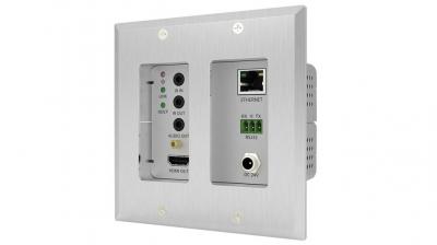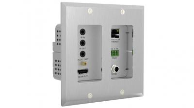 The Intelix INT-HDX100-RXWP extends HDMI, IR, and RS232 over a single solid core shielded Category cable. The INT-HD70-TXWP supports 1080p video signal up to 100m and 4K signals up to 4K@60Hz / 4:2:0 / 8 bit color up to 70m. The INT-HDX100-RXWP supports CEC pass through and is HDCP 2.2 compliant. 48V PoH built in allows the transmitter to be powered from a compatible Intelix transmitter.