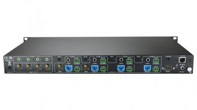 4x4 Hdmi Matrix Switcher with 4 HdbaseT 100m Receivers. Front panel, IR, TCP/IP and RS232 Control.