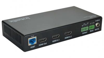 The AS-2H utilizes HDBaseT technology to extend the digital output up to 70 meters away using solid core shielded Category 5e or greater cable. This transmitter device is compatible with several Intelix HDBaseT receivers, but is designed to work primarily with the DIGI-HD60C-R. The unit features multiple EDID modes to eliminate user confusion, and incompatible video formats. An HDMI output is available for use to connec� if both inputs are active, the “last in” will be selected. There are additional contact closure inputs provided on the rear of the unit to allow third party control. RS232 control of the AS-2H can be accomplished by connecting to the RS232 port on a compatible receiver, such as a DIGI-HD60C-R, or through a direct connection on the RS232 input of the device.