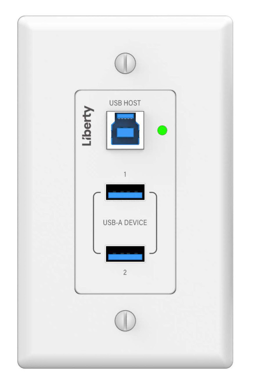 • Host Side wall plate format with 1 USB-B Host and 2 USB-A Client ports. USB-B offers a much more reliable and secure connection at the plate vs USB-C, and a USB-C to B cable is included for connection with USB-C computers